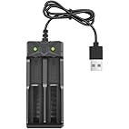 18650 Battery Charger, Dual Universal USB Fast Charger for 3.7V-4.2V Li-ion Batteries with LED Indicator - Compati...