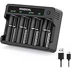 POWEROWL 4-slot AA AAA Battery Charger with LCD Display (5V 2A Quick Charging, Independent Slot) for Ni-MH Recharg...