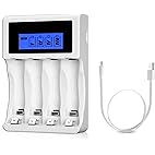 BONAI 4 Bays AA AAA Ni-MH Ni-CD Battery Charger, LCD Display Smart Charger With Unique USB Design(Micro USB Cable ...