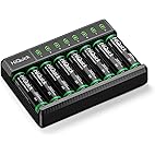 Dlyfull 8 Bay AA AAA Battery Charger with USB-C Port and Independent Slot, Rechargeable Battery Charger for 1.2V N...