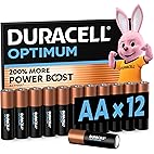 DURACELL Optimum AA Batteries (12 Pack) – Alkaline Batteries 1.5V – 200% More Power Boost Actives – Meets Demands ...
